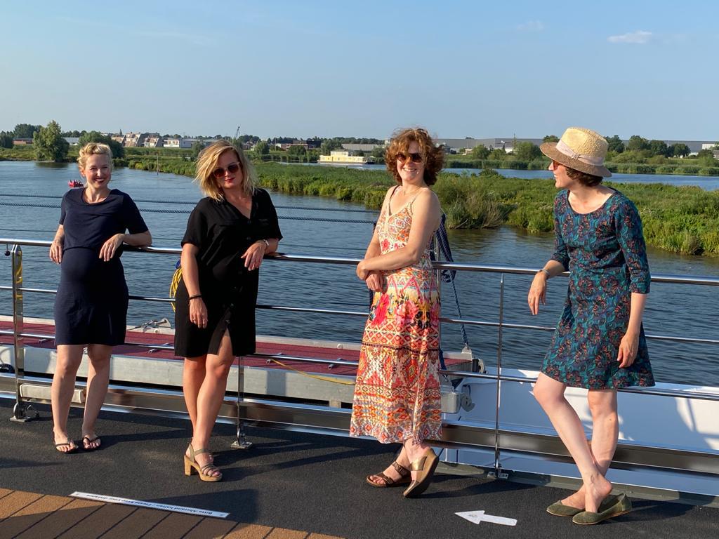 Met koffers die niet te tillen waren door de enorme stapels bladmuziek begonnen we aan de 6-daagse muziekcruise over de Nederlandse rivieren. We speelden twee concerten per dag voor de passagiers; rond koffietijd en ’s avonds na het diner. Voor ons de ideale gelegenheid om nieuwe stukken te try-outen!